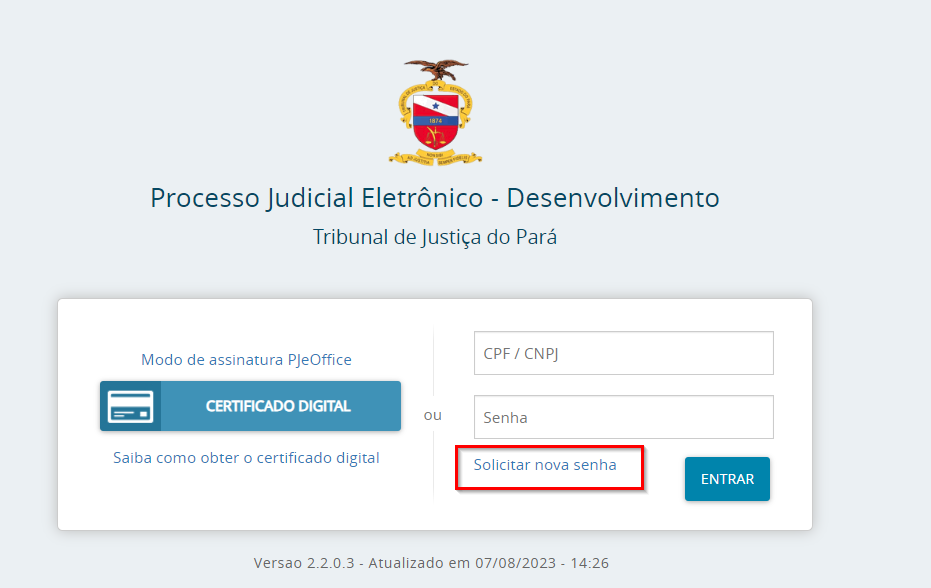 Após seguir este procedimento, o cadastro estará concluído. Para acessar o sistema, clique em "Certificado digital" na tela de login do PJe.